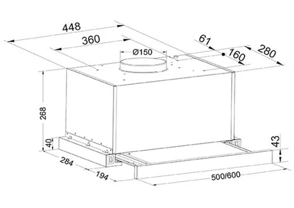 вытяжка встраиваемая телескопическая, 50 см, 1000 м3/ч, белый
