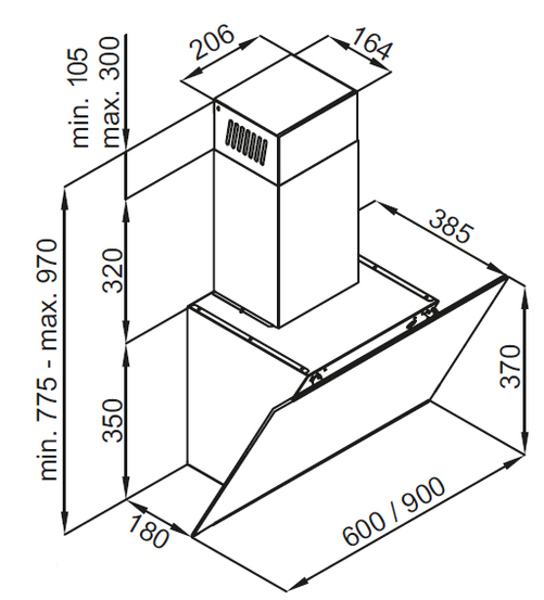 вытяжка наклонная, 60 см, 1270 м3/ч, черный матовый