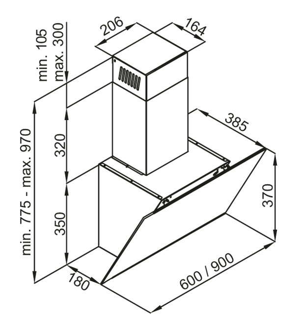 вытяжка наклонная, 90 см, 1270 м3/ч, черный матовый