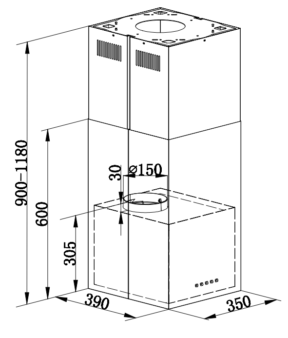 вытяжка островная, 35 см, 1050 м3/ч, нержавеющая сталь