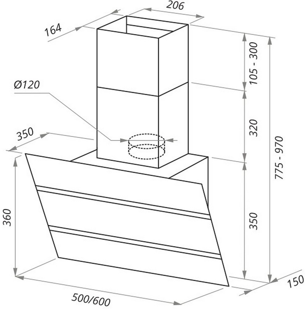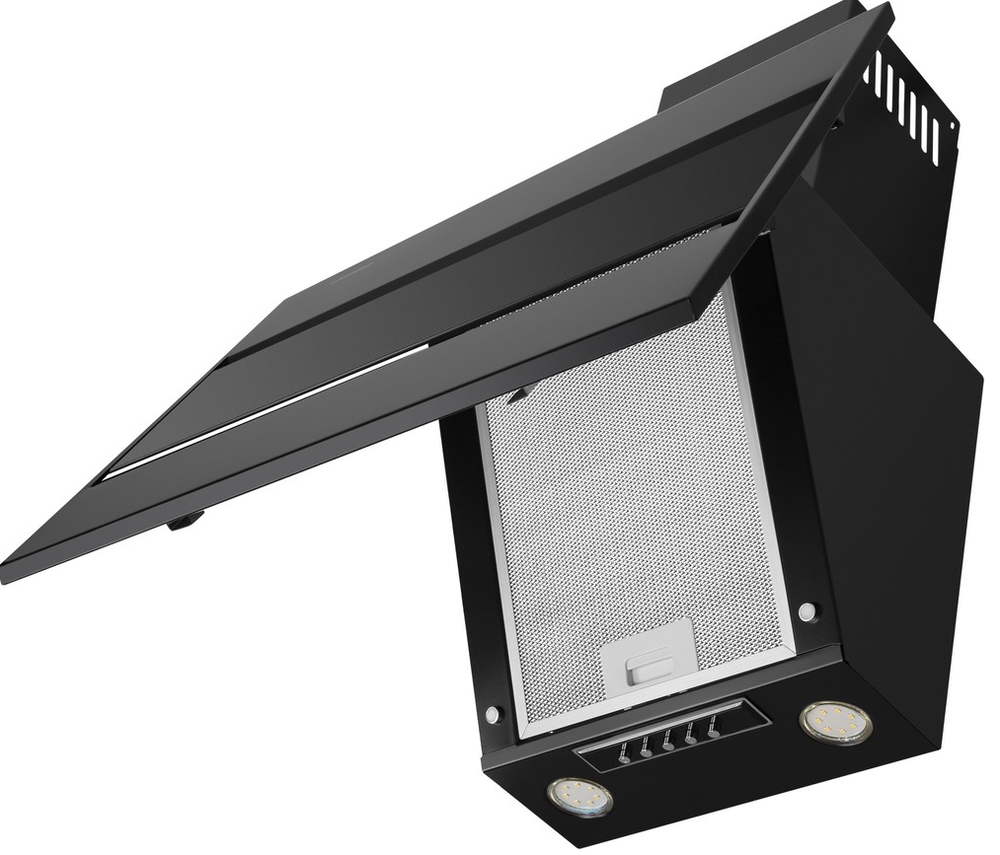 вытяжка наклонная, 60 см, 850 м3/ч, черный/черное стекло