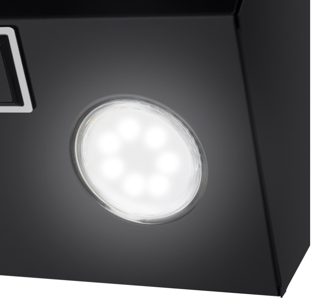 вытяжка наклонная, 60 см, 850 м3/ч, нержавеющая сталь/черное стекло
