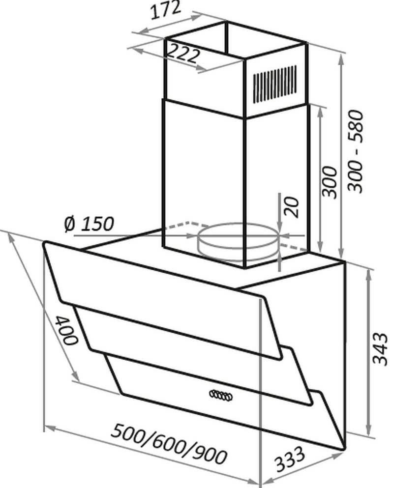 вытяжка наклонная, 60 см, 700 м3/ч, черный