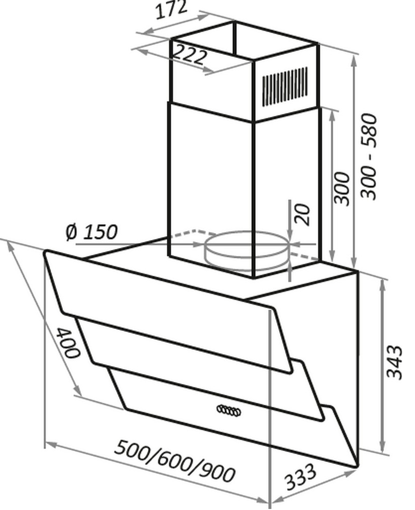 вытяжка наклонная, 50 см, 700 м3/ч, черное стекло