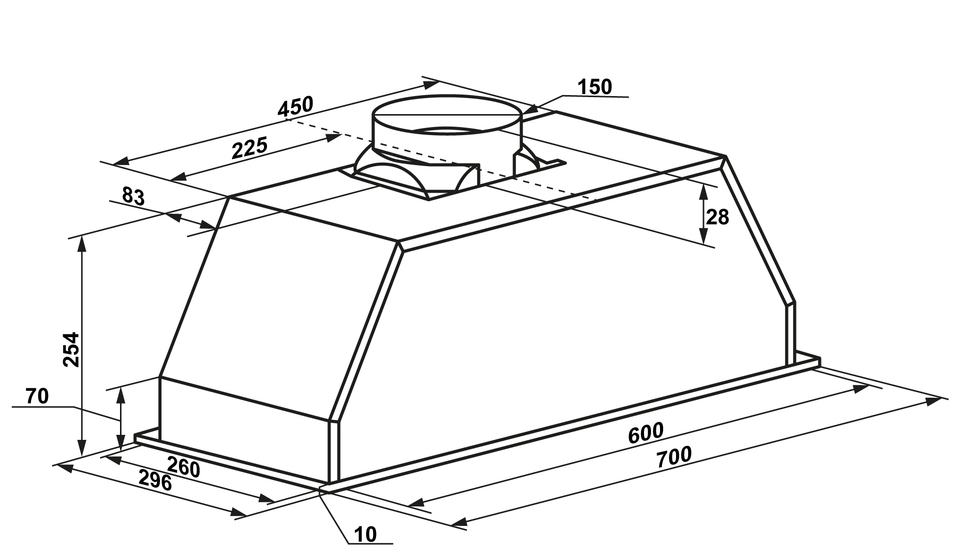 вытяжка встраиваемая в подвесной шкаф, 70 см, 800 м3/ч, нержавеющая сталь