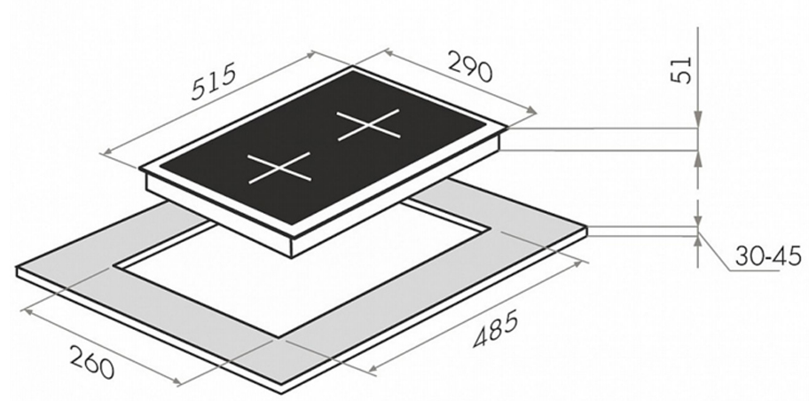 поверхность электрическая, 30 см, 2 конфорки, нержавеющая сталь