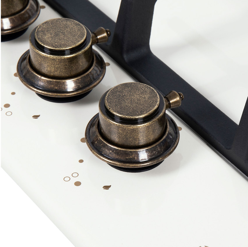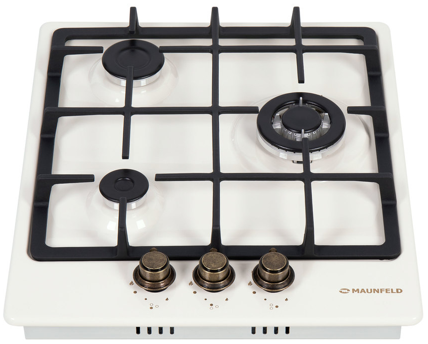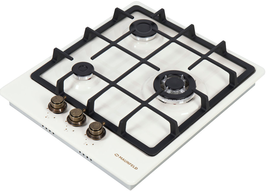 поверхность газовая, 45 см, газ на эмали, 3 конфорки, решетки чугунные, слоновая кость