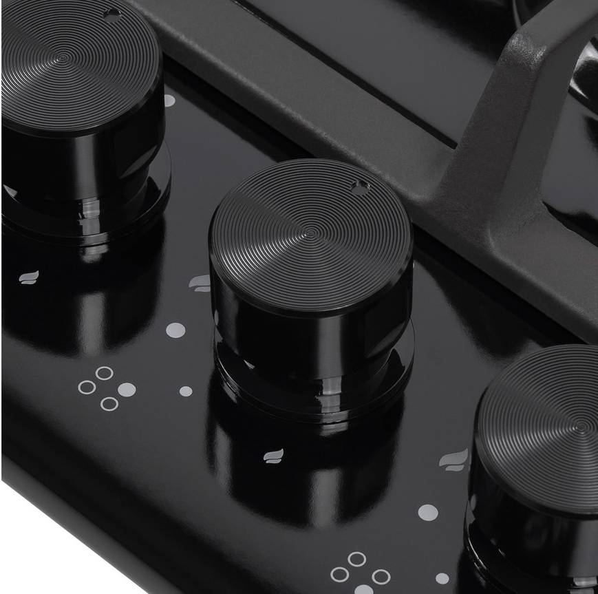 поверхность газовая, 60 см, газ на эмали, 4 конфорки, решетки чугунные, черный