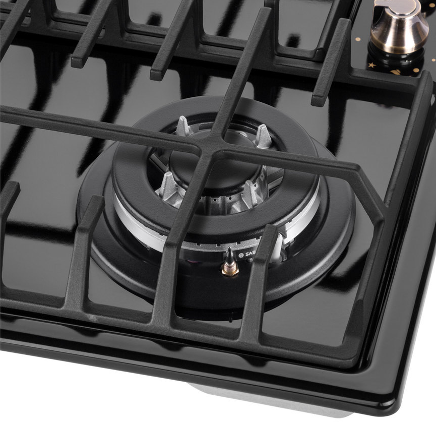 поверхность газовая, 60 см, газ на эмали, 4 конфорки, решетки чугунные, черный