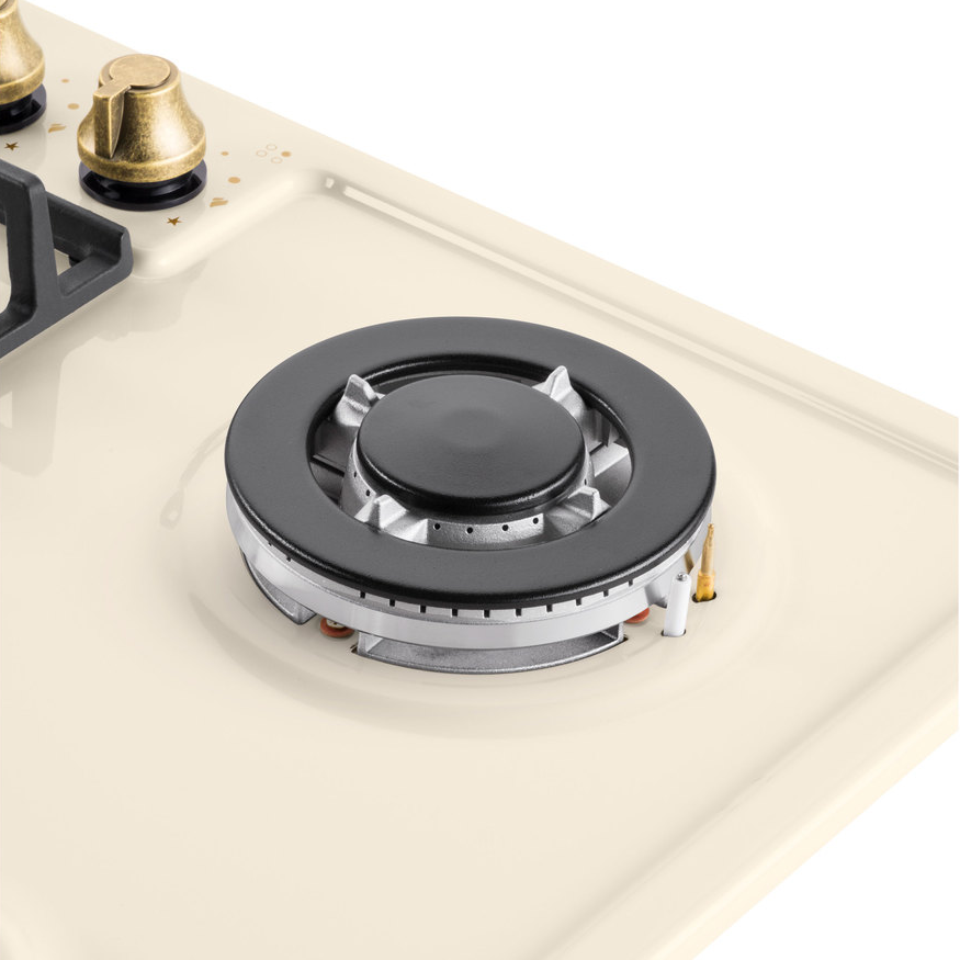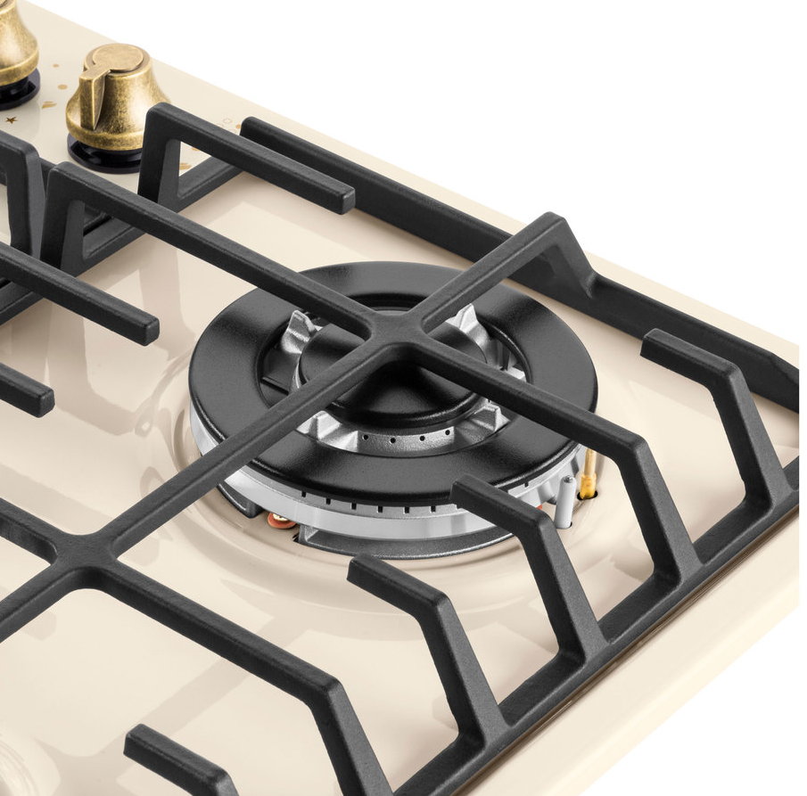поверхность газовая, 60 см, газ на эмали, 4 конфорки, решетки чугунные, бежевый