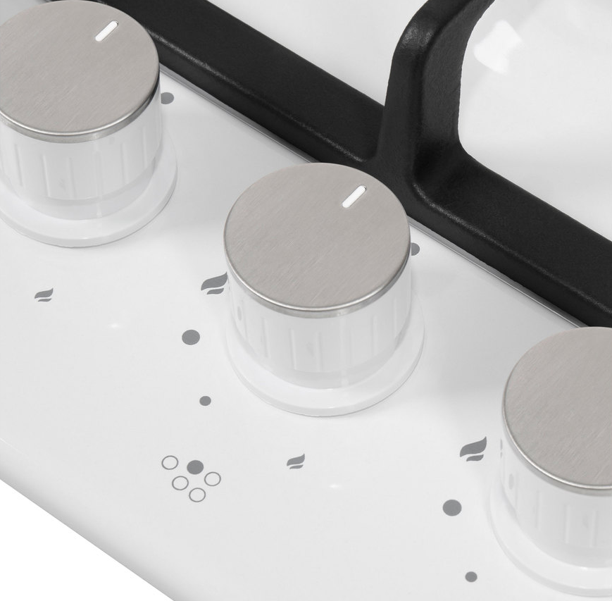 поверхность газовая, 70 см, газ на эмали, 5 конфорки, решетки чугунные, белый