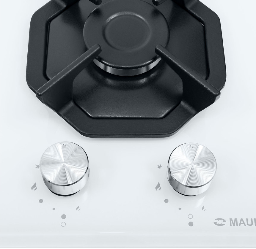 поверхность газовая, 30 см, газ на стекле, 2 конфорки, чугунные решетки, белый