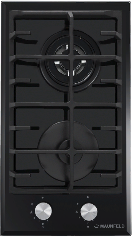 поверхность газовая, 30 см, газ на стекле, 2 конфорки, решетки чугунные, черный