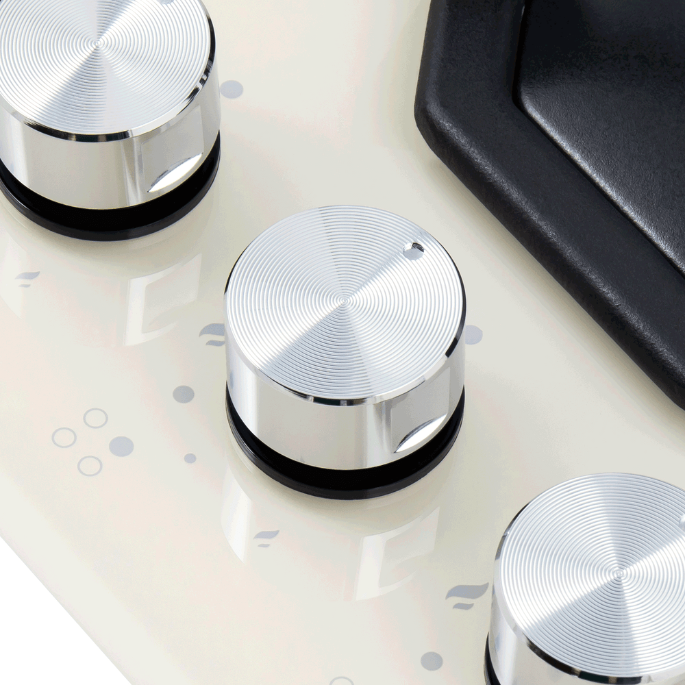 поверхность газовая, 60 см, газ на стекле, 4 конфорки, решетки чугунные, бежевый