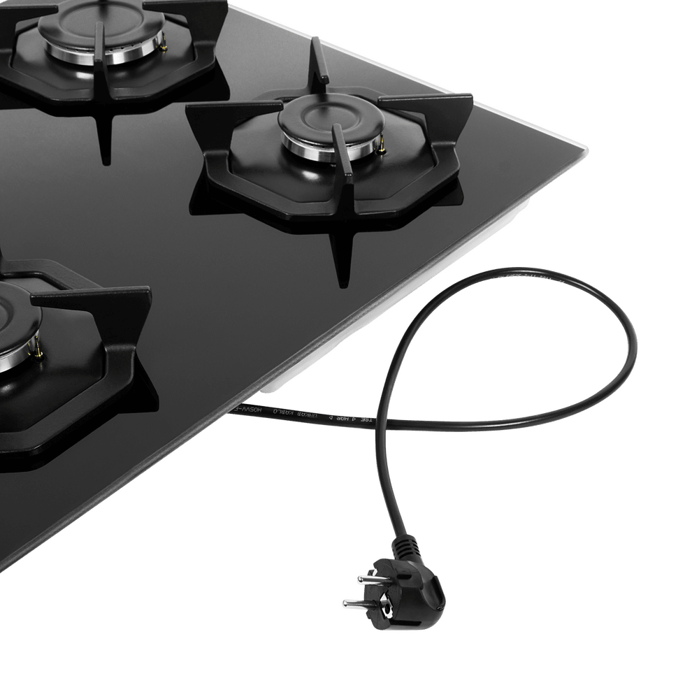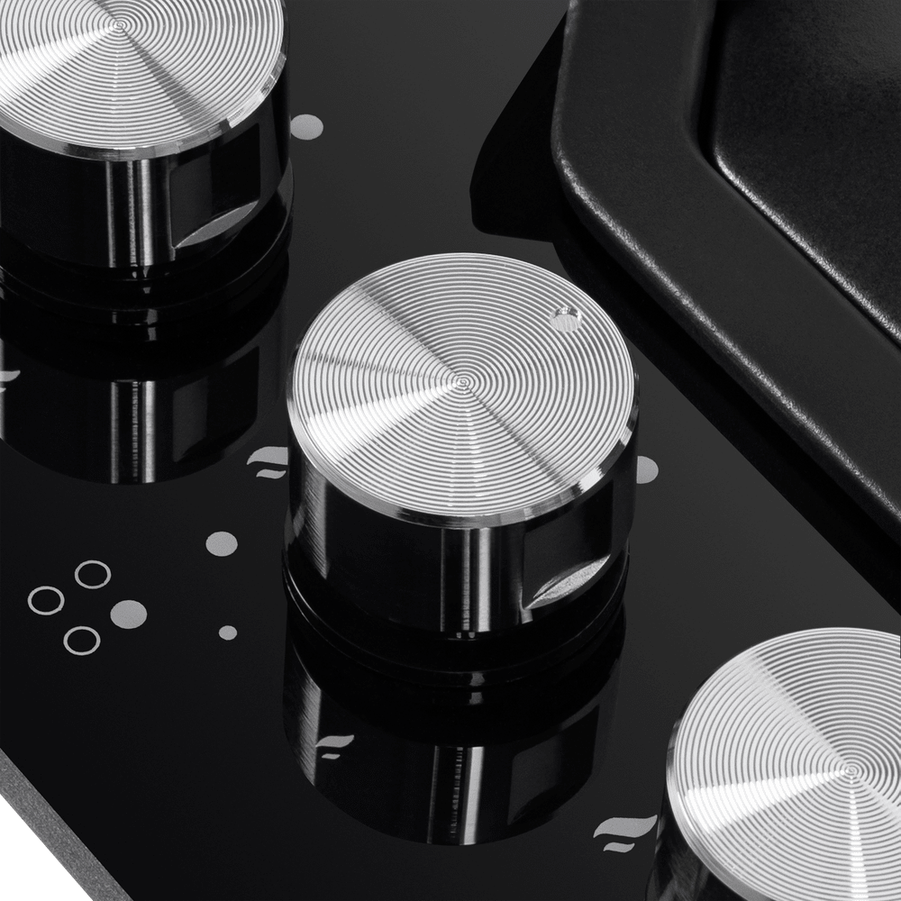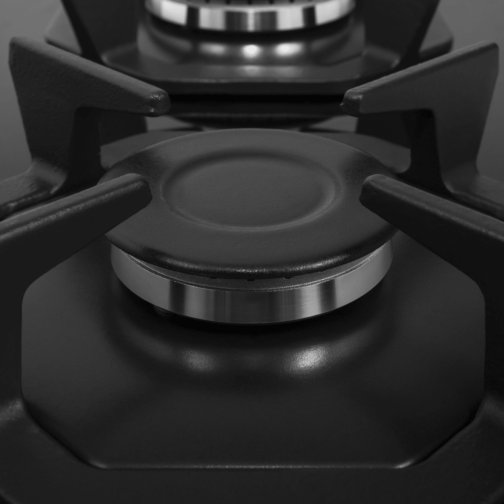 поверхность газовая, 60 см, газ на стекле, 4 конфорки, чугунные решетки, черный