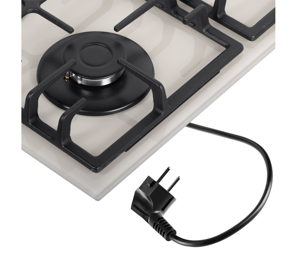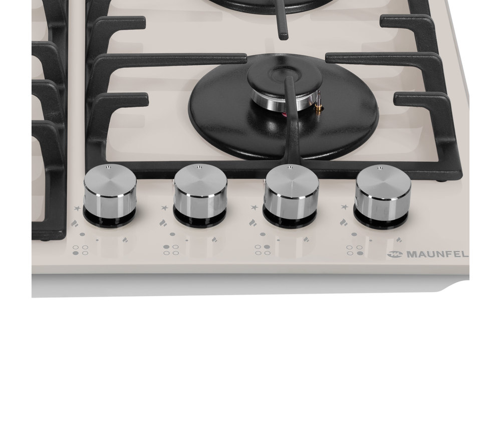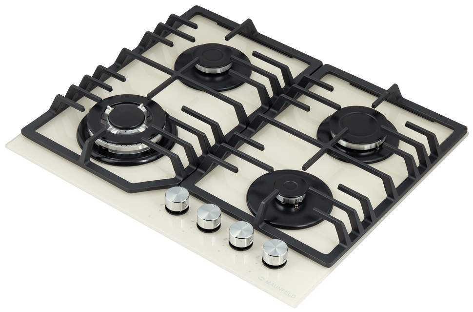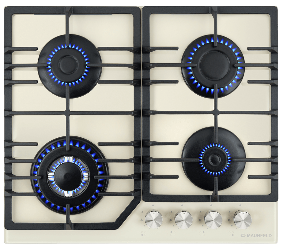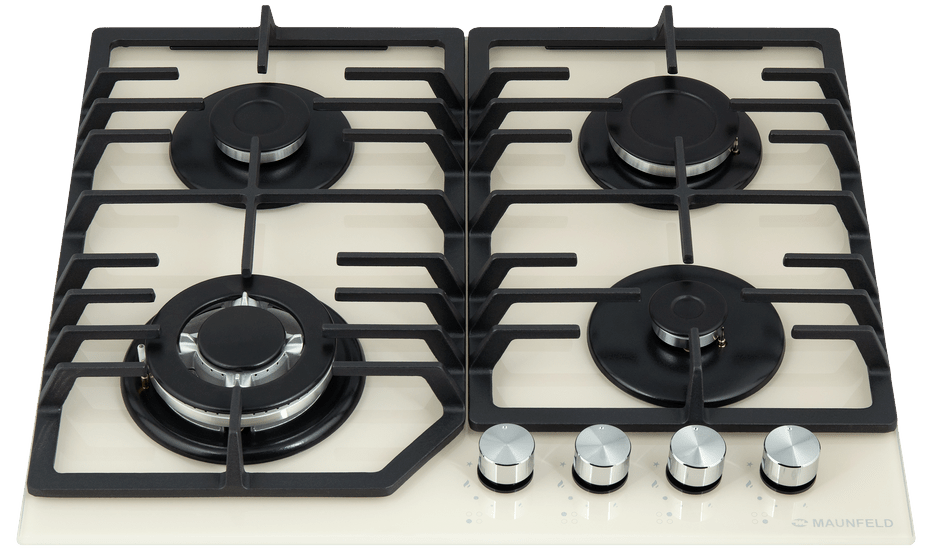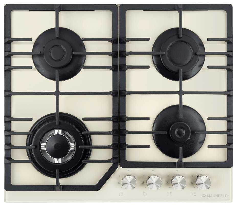 поверхность газовая, 60 см, газ на стекле, 4 конфорки, решетки чугунные, слоновая кость