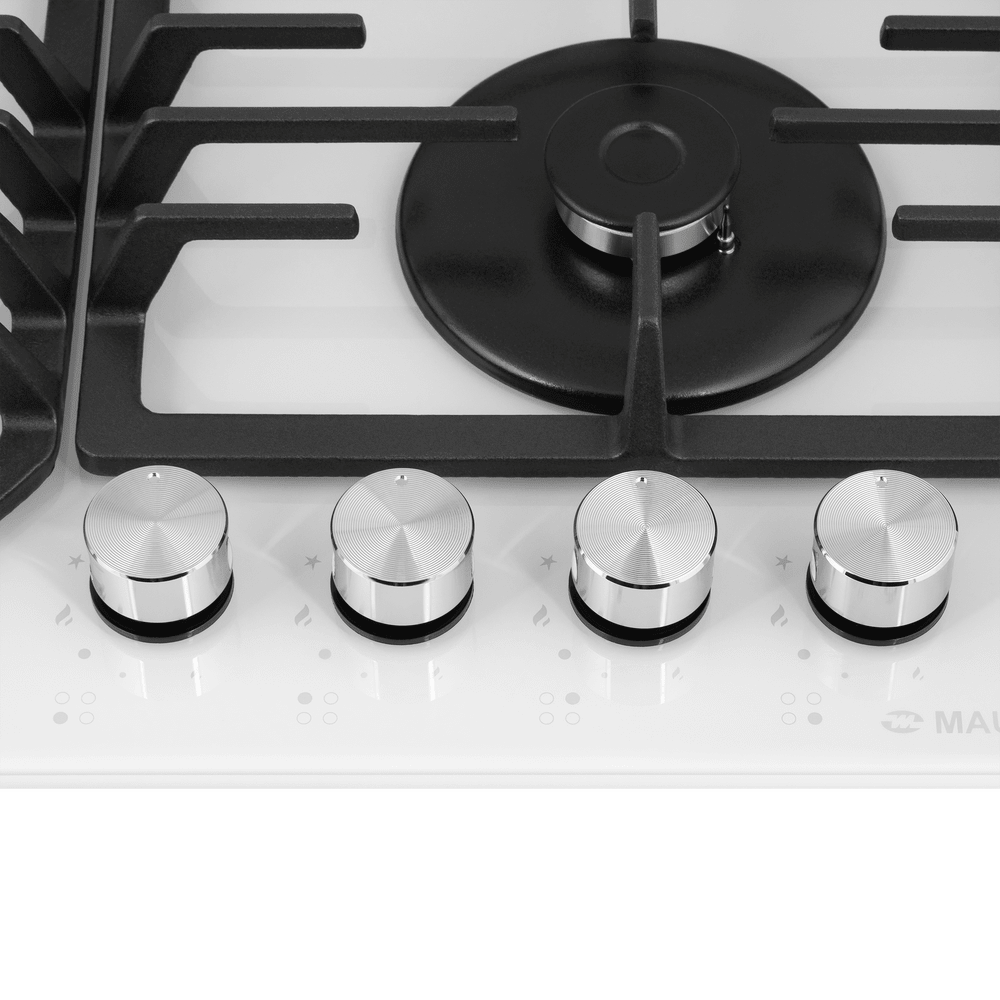 поверхность газовая, 60 см, газ на стекле, 4 конфорки, решетки чугунные, белый