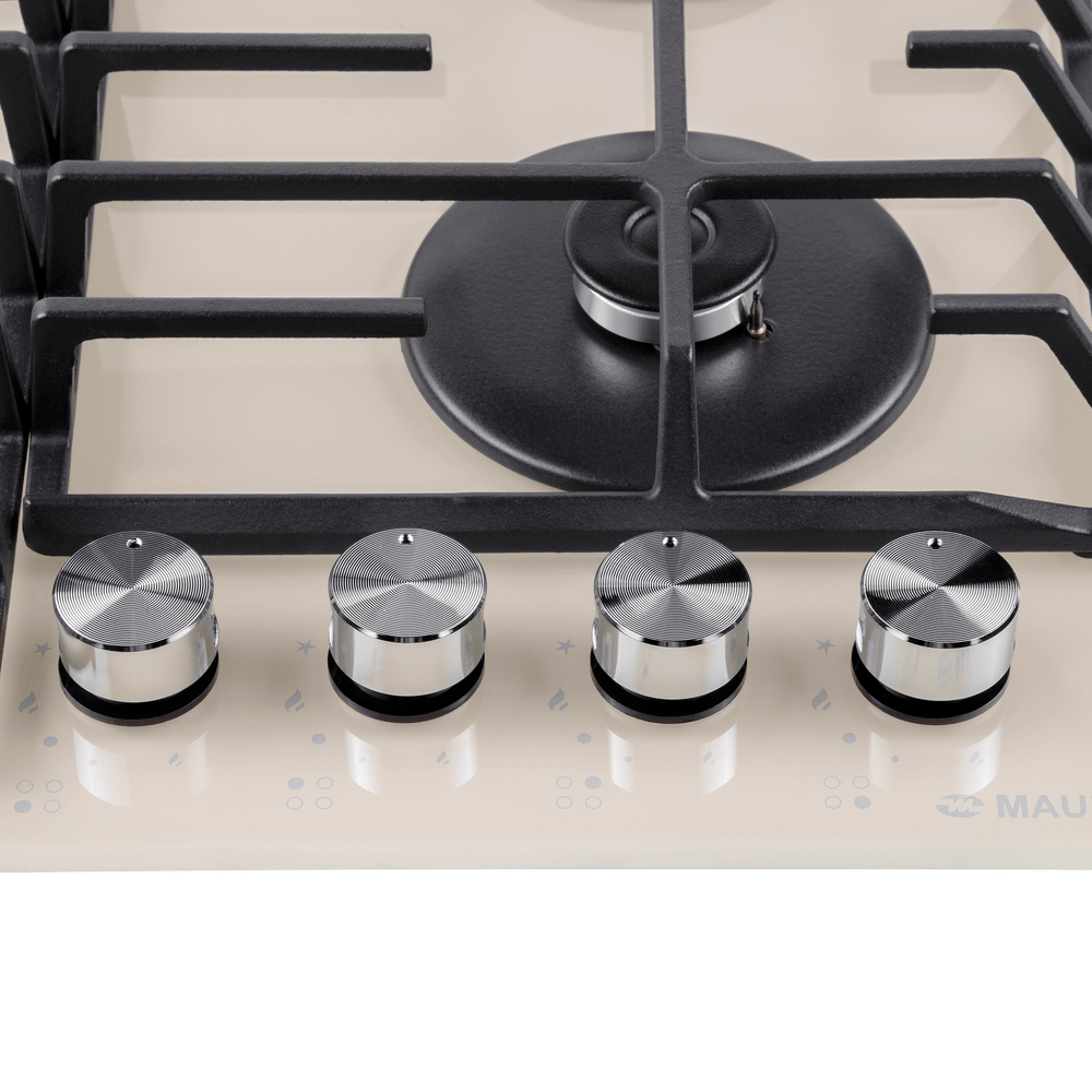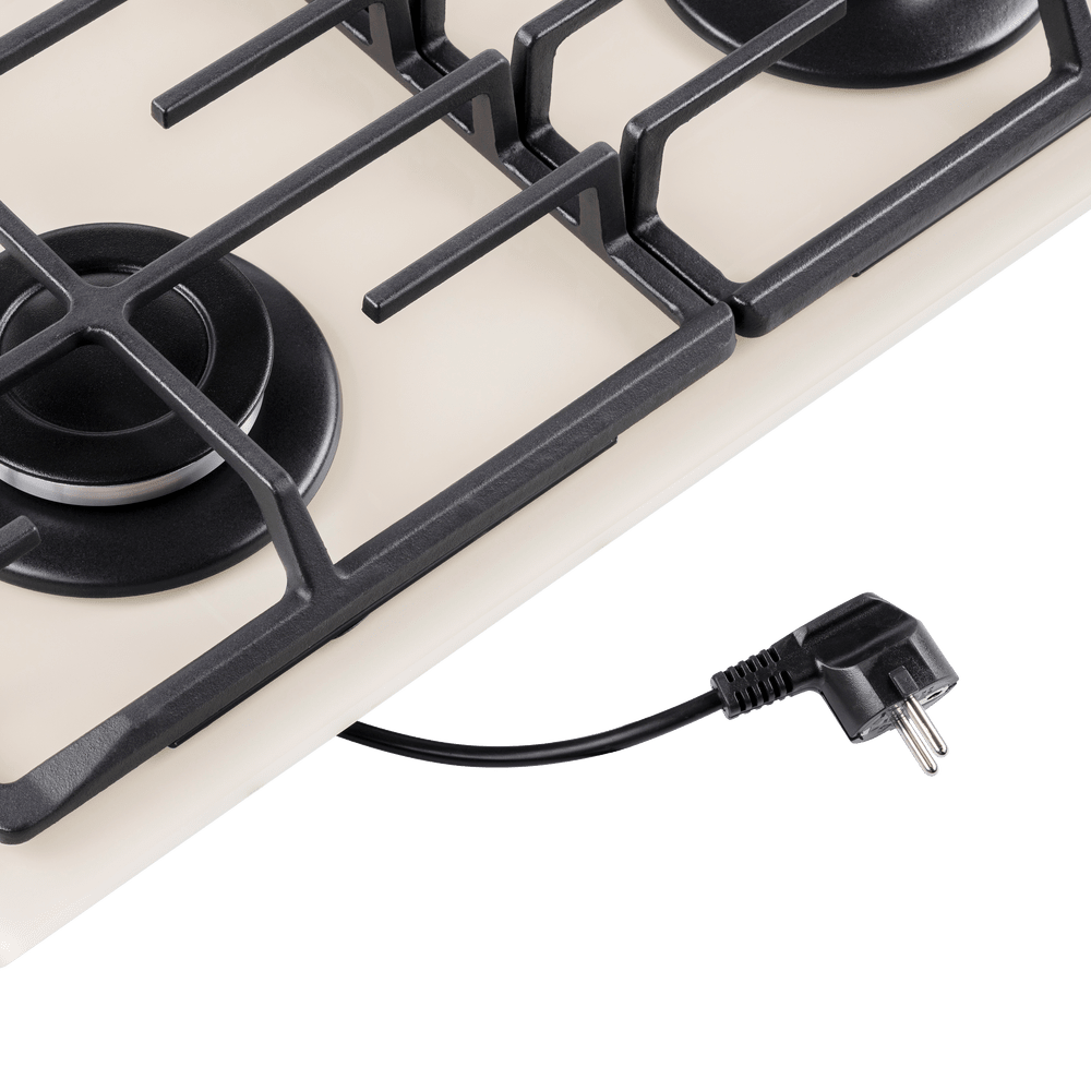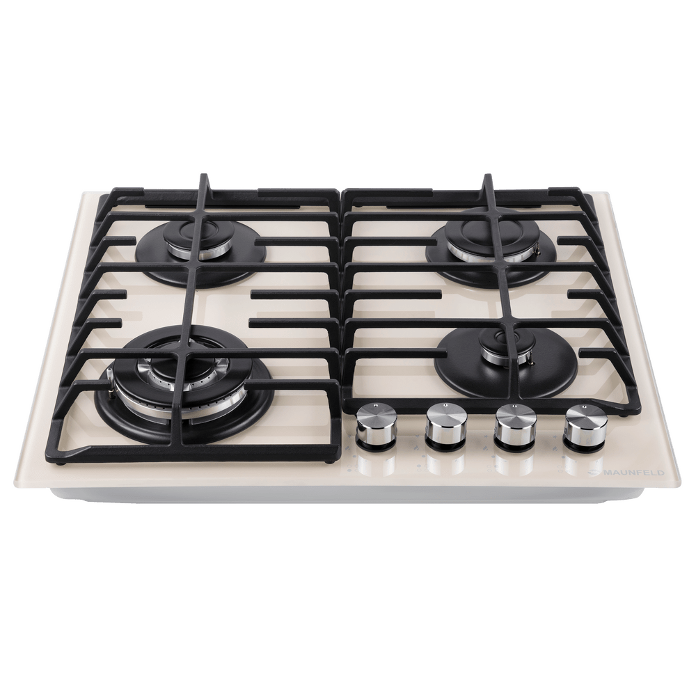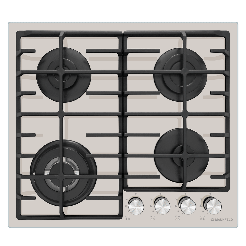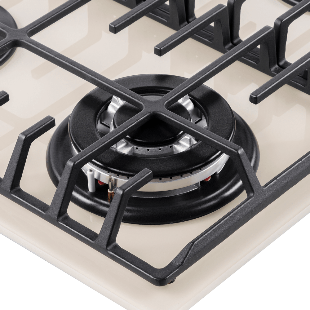 поверхность газовая, 60 см, газ на стекле, 4 конфорки, решетки чугунные, бежевый