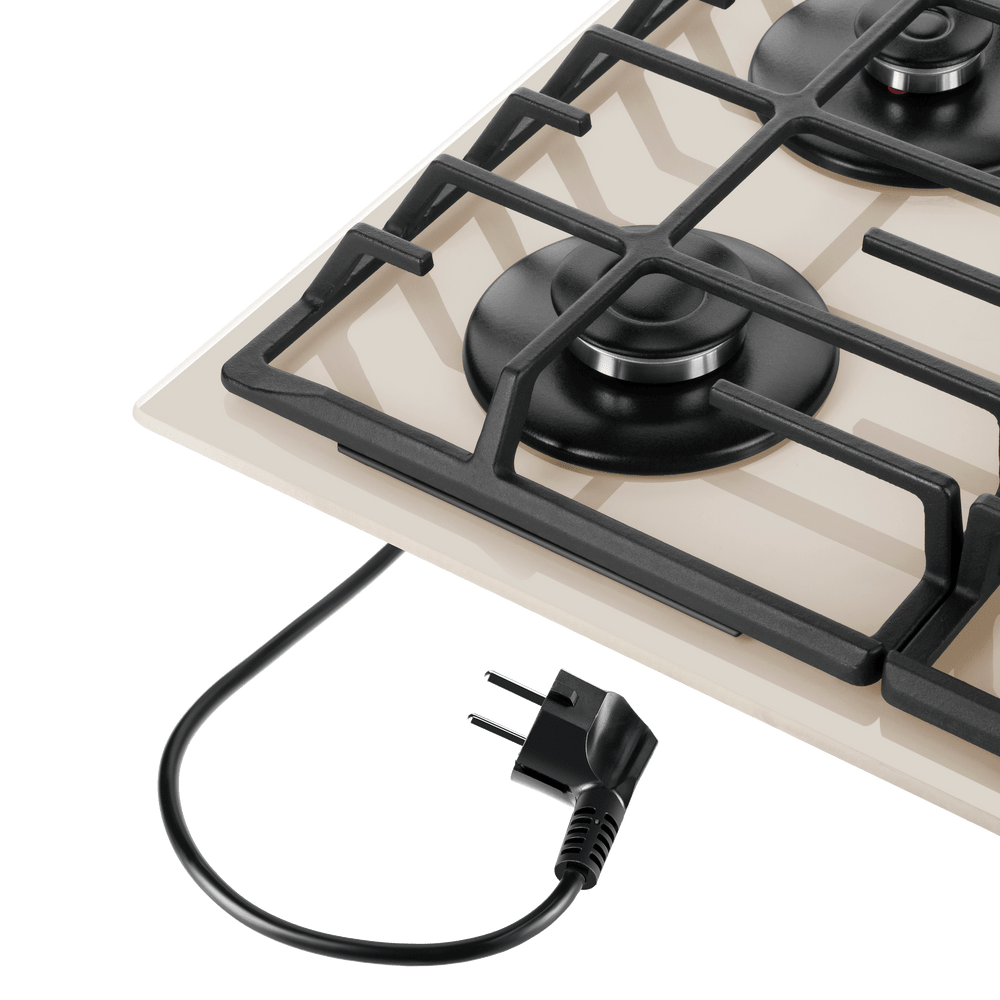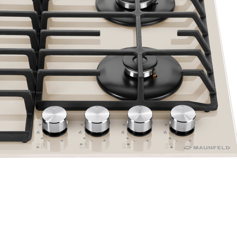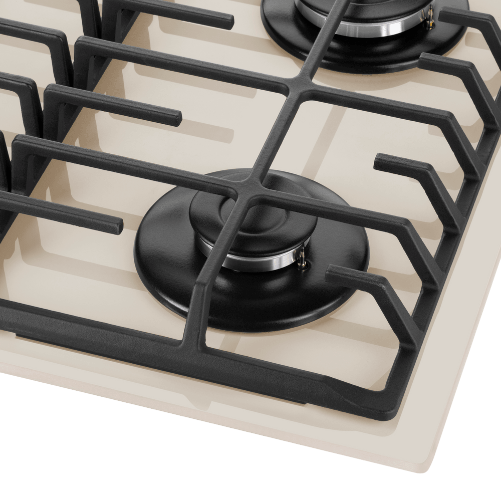 поверхность газовая, 60 см, газ на стекле, 4 конфорки, решетки чугунные, бежевый