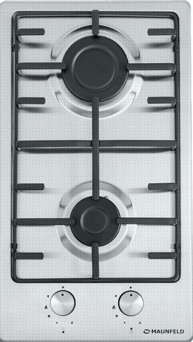 поверхность газовая, 30 см, газ на металле, 2 конфорки, решетки эмалированные, нержавеющая сталь