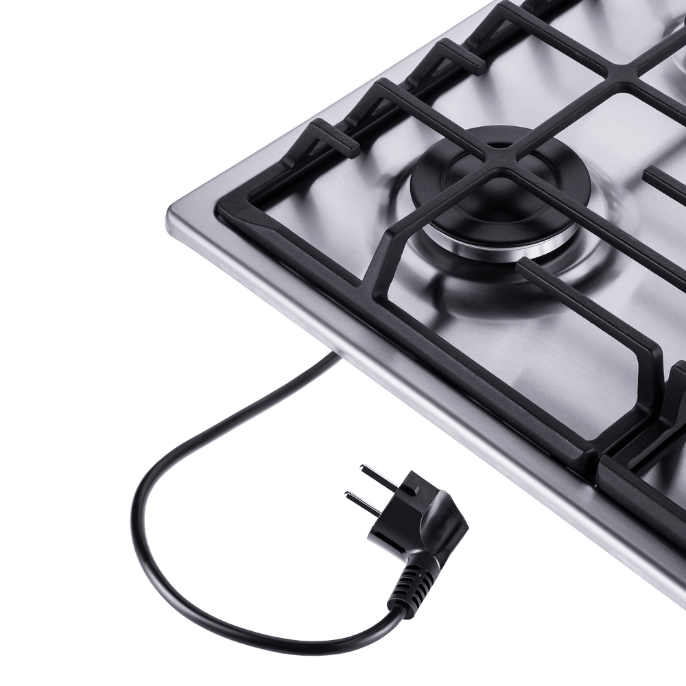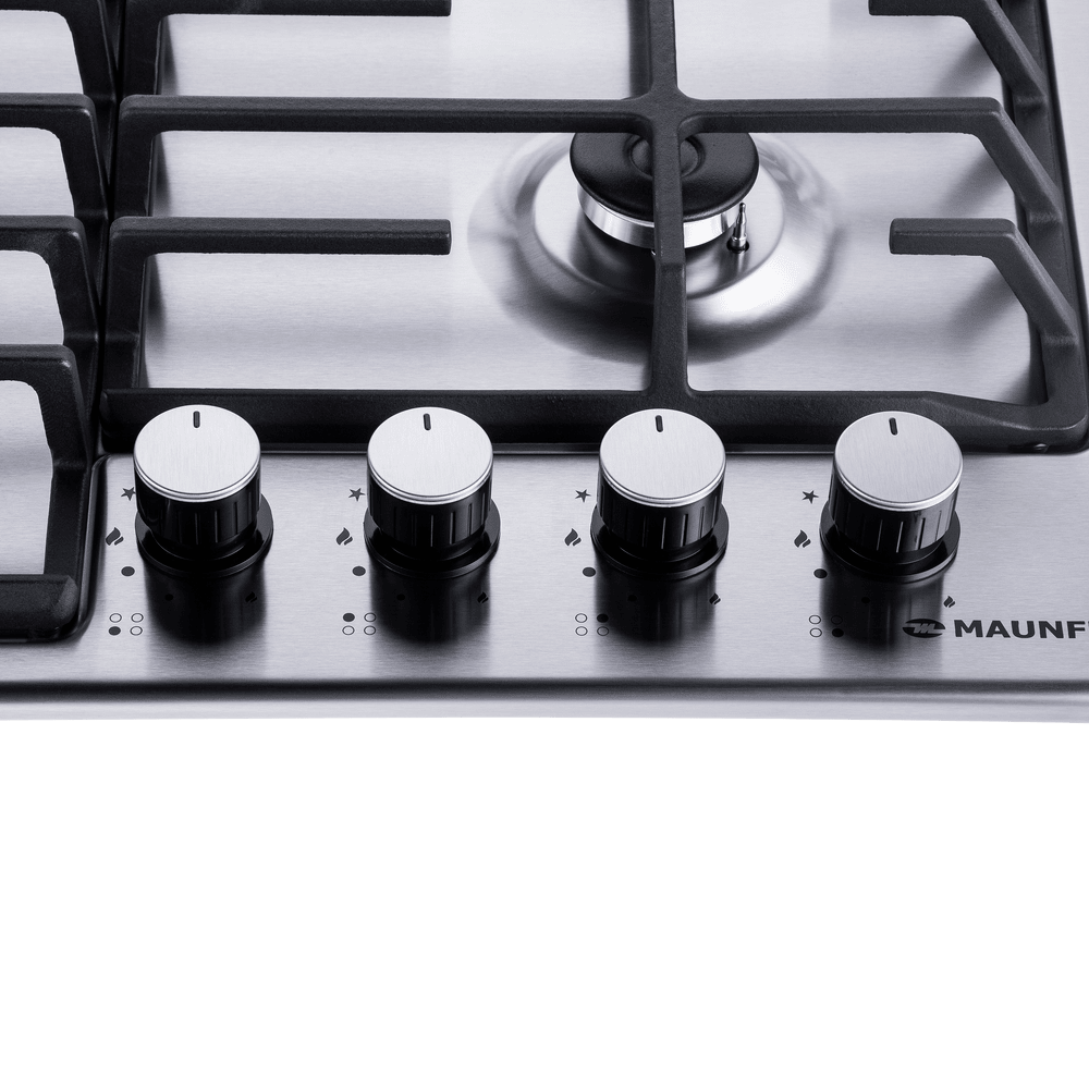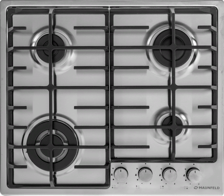 поверхность газовая, 60 см, газ на металле, 4 конфорки, решетки чугунные, нержавеющая сталь