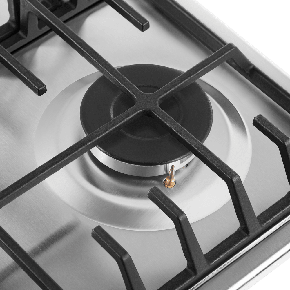 поверхность газовая, 60 см, газ на металле, 4 конфорки, решетки чугунные, нержавеющая сталь