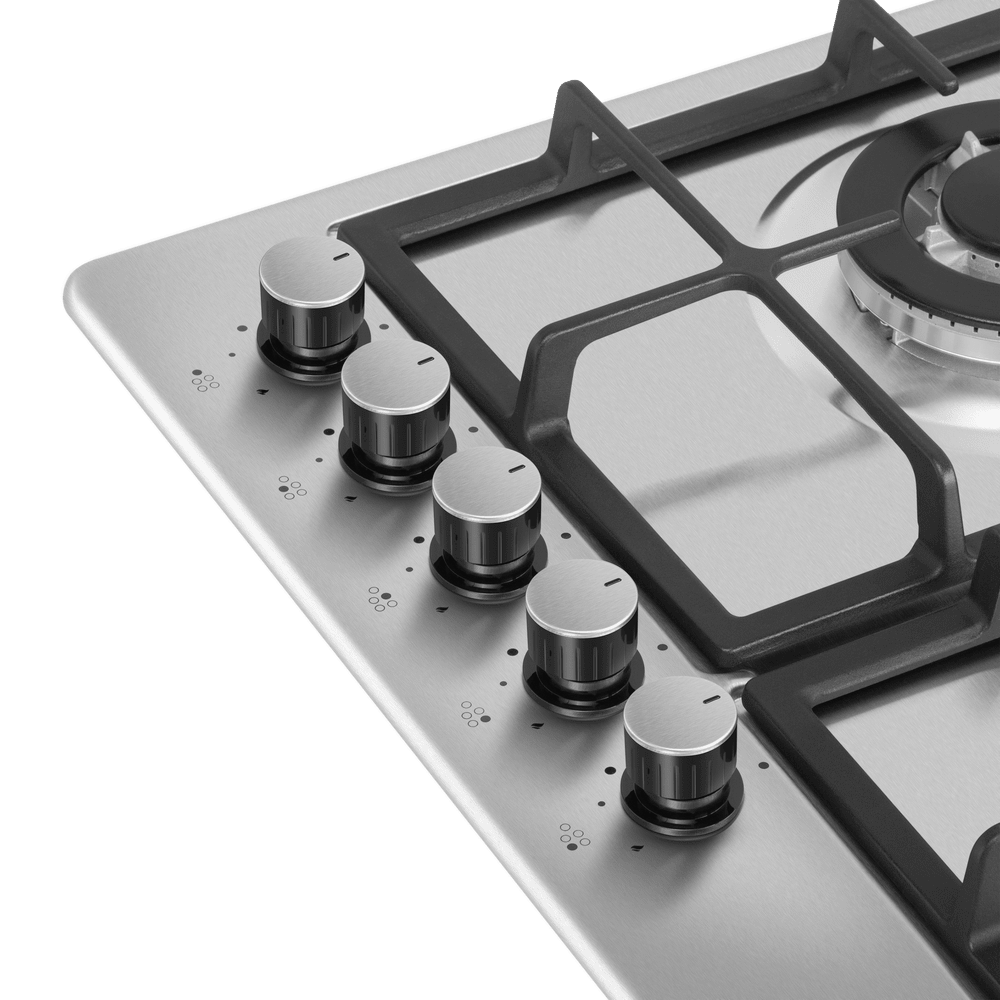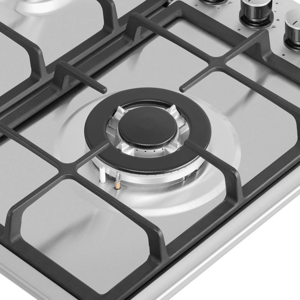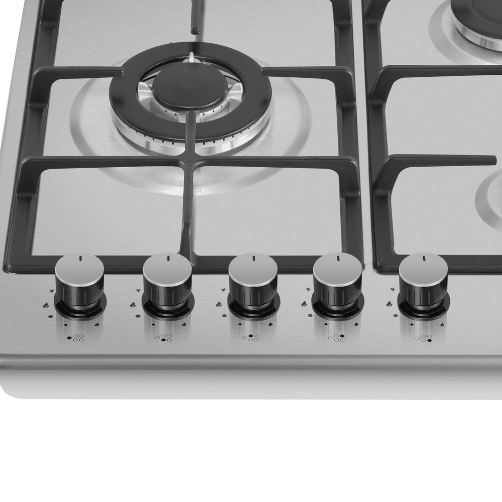 поверхность газовая, 86 см, газ на металле, 5 конфорок, решетки чугунные, нержавеющая сталь