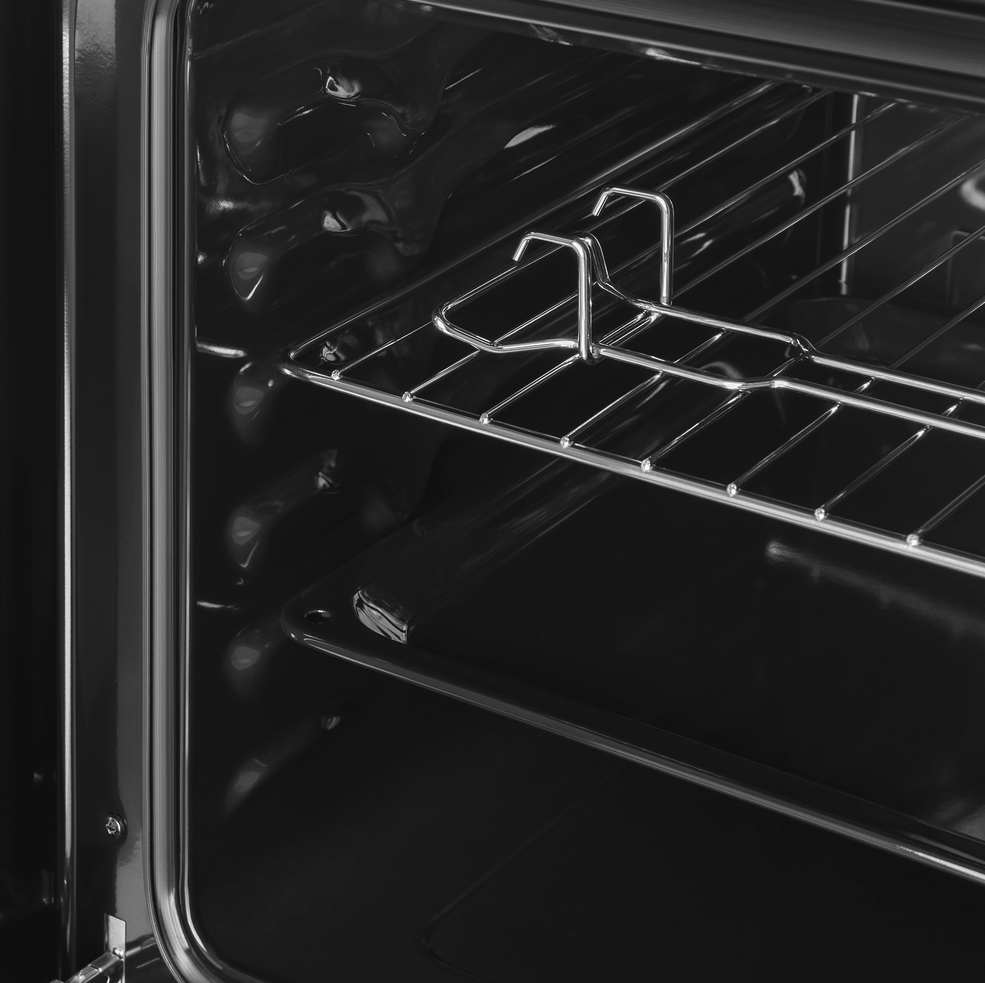 Выдвижные металлические полозья, которые легко выезжают за пределы камеры духовки вместе с противнем, не давая ему упасть.
