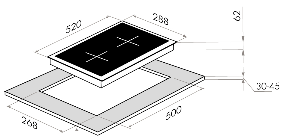 поверхность варочная стеклокерамическая индукционная, 30 см, черный