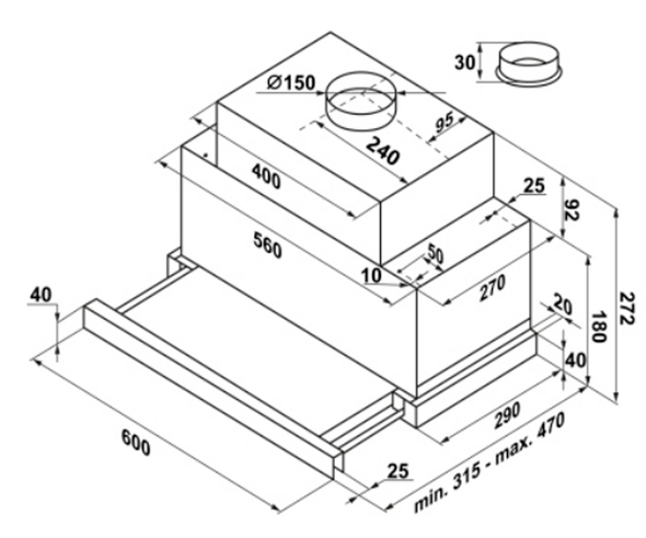 вытяжка встраиваемая телескопическая, 60 см, 1050 м3/ч, белый