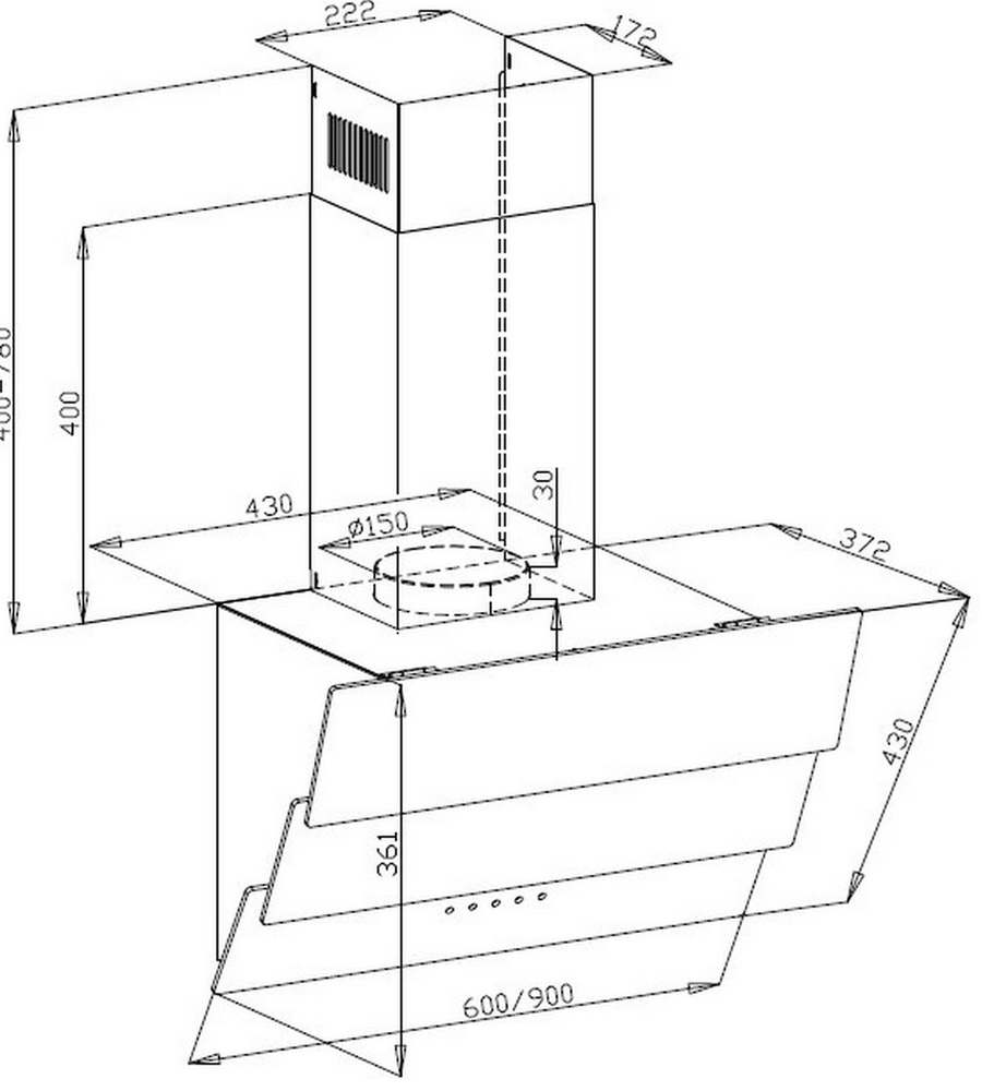 вытяжка наклонная, 60 см, 1000 м3/ч, черное стекло