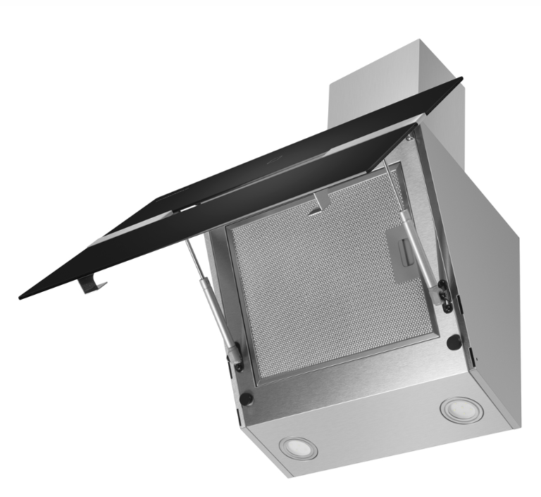 вытяжка наклонная, 60 см, 1050 м3/ч, нержавеющая сталь/черное стекло