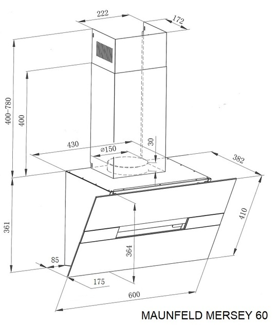Maunfeld MERSEY 60 нержавеющая сталь/черное стекло Вытяжка наклонная