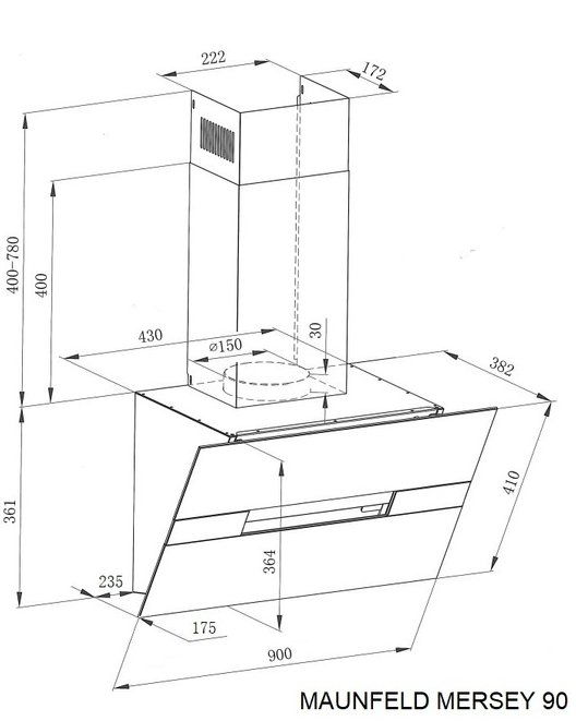 Maunfeld MERSEY 90 WHITE Glass WHITE (INOX)
