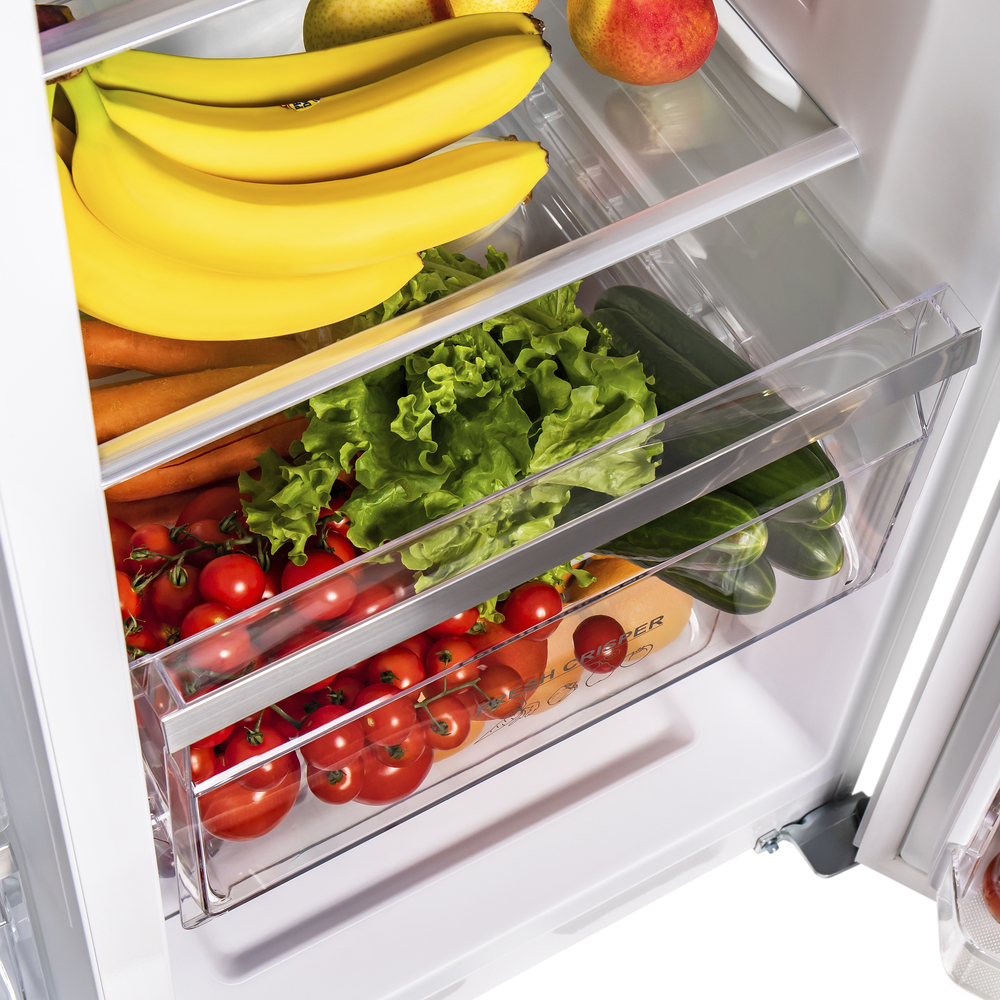 В зоне свежести температура держится на уровне 0°С, так продукты дольше остаются свежими. Подходит для свежего мяса, рыбы, фруктов, овощей.