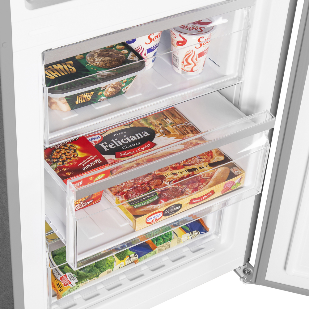 В зоне свежести температура держится на уровне 0°С, так продукты дольше остаются свежими. Подходит для свежего мяса, рыбы, фруктов, овощей.