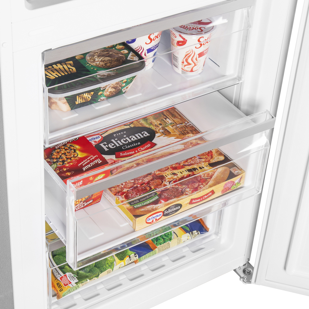 В зоне свежести температура держится на уровне 0°С, так продукты дольше остаются свежими. Подходит для свежего мяса, рыбы, фруктов, овощей.