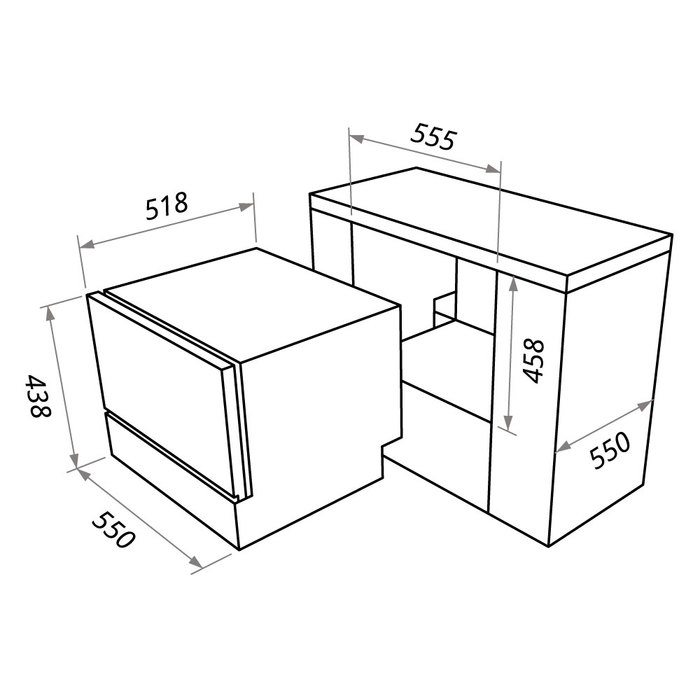 машина посудомоечная компактная встраиваемая, 6 комплектов, 55х51,8х43,8 см