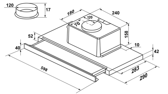 вытяжка встраиваемая в подвесной шкаф, 60 см, 750 м3/ч, черный/черное стекло