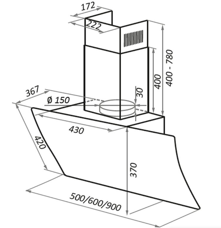 вытяжка наклонная, 60 см, 1000 м3/ч, черное стекло