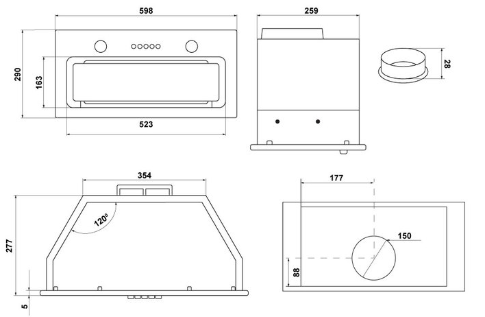 Maunfeld TRAPEZE 602M BLACK Вытяжка в подвесной шкаф