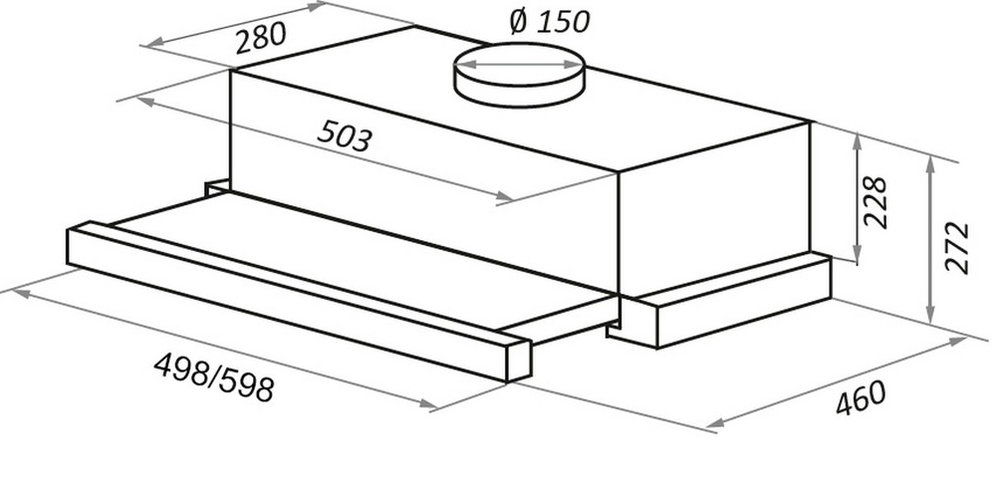 вытяжка встраиваемая телескопическая, 50 см, 1000 м3/ч, белый
