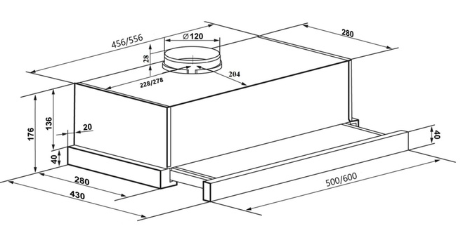 вытяжка встраиваемая телескопическая, 50 см, 520 м3/ч, белый