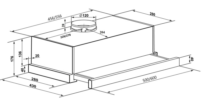 вытяжка встраиваемая телескопическая, 60 см, 520 м3/ч, белый
