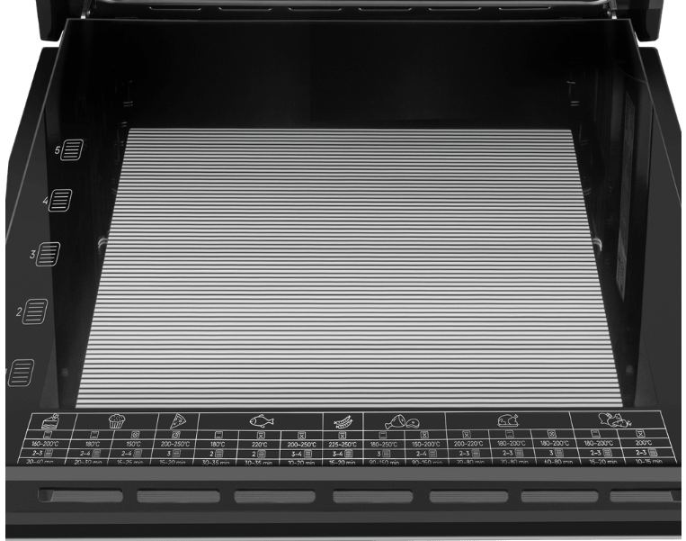 Полезный объем камеры прибора, который может быть использован для приготовления. Духовки с объемом <50 л рассчитаны на семьи из 2-4 человек.