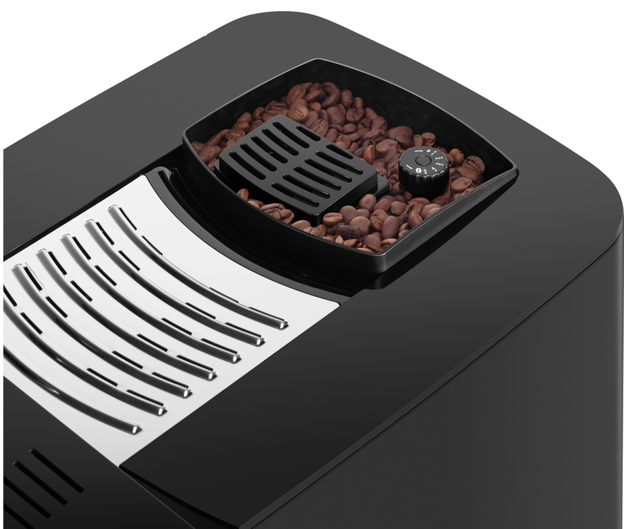 Устройство для перемалывания кофе уже встроено в прибор. Достаточно засыпать зерна в емкость и наслаждаться свежемолотым кофе.