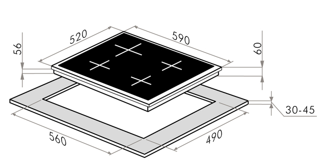 поверхность варочная стеклокерамическая индукционная, 60 см, черный