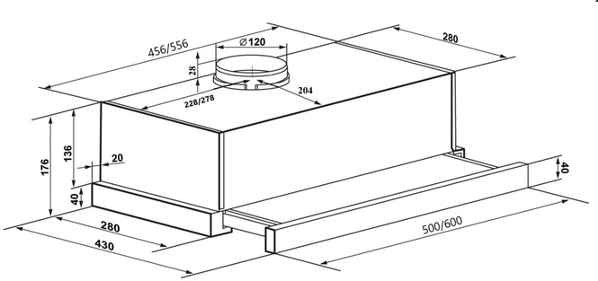 вытяжка встраиваемая телескопическая, 50 см, 520 м3/ч, белое стекло