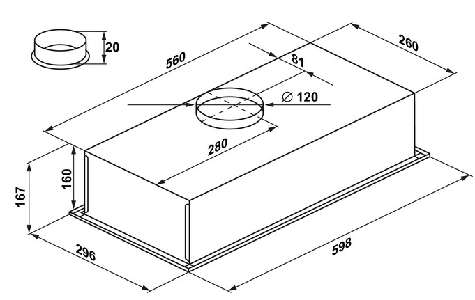 вытяжка встраиваемая в подвесной шкаф, 60 см, 850 м3/ч, бежевый