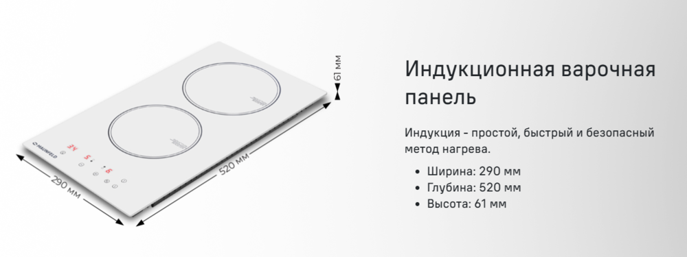 На варочной поверхности может быть от 2 до 8 электрических конфорок с индукционным нагревом. Для них нужна специальная посуда.